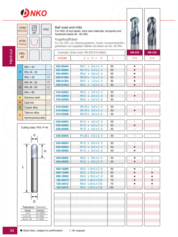 Dao phay cầu NKO HB235 006-01204 là dao phay carbide kích thước siêu nhỏ, thuộc dòng NKO HARD-CUT, chuyên dùng cho gia công tinh, khắc chi tiết nhỏ và các nguyên công CNC đòi hỏi độ chính xác cao trên vật liệu thép cứng lên đến 65HRC.