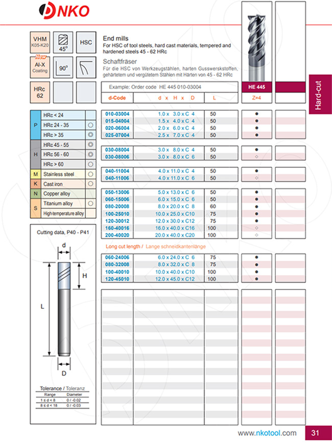 Dao phay ngón NKO HE445 010-03004 – Carbide cắt cứng 65HRC