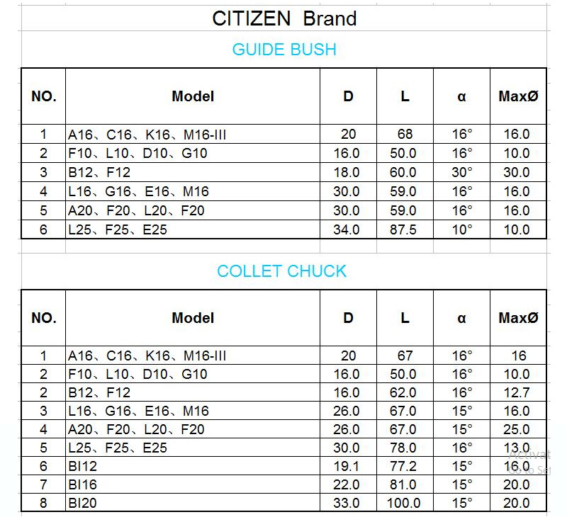- Và các máy tiện khác sử dụng collet chung kích thước OD, L, D
