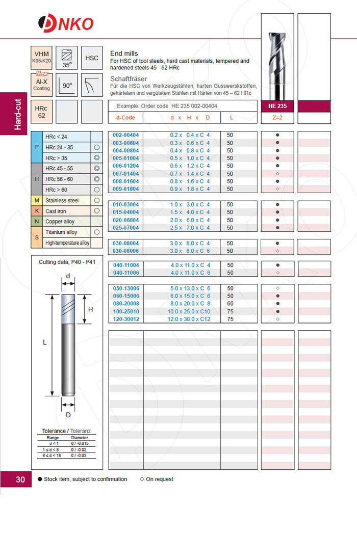 Dao phay ngón NKO HE235 025-07004 – Carbide Ø2.5mm, 2 lưỡi, phủ Al-X, gia công thép 65HRC