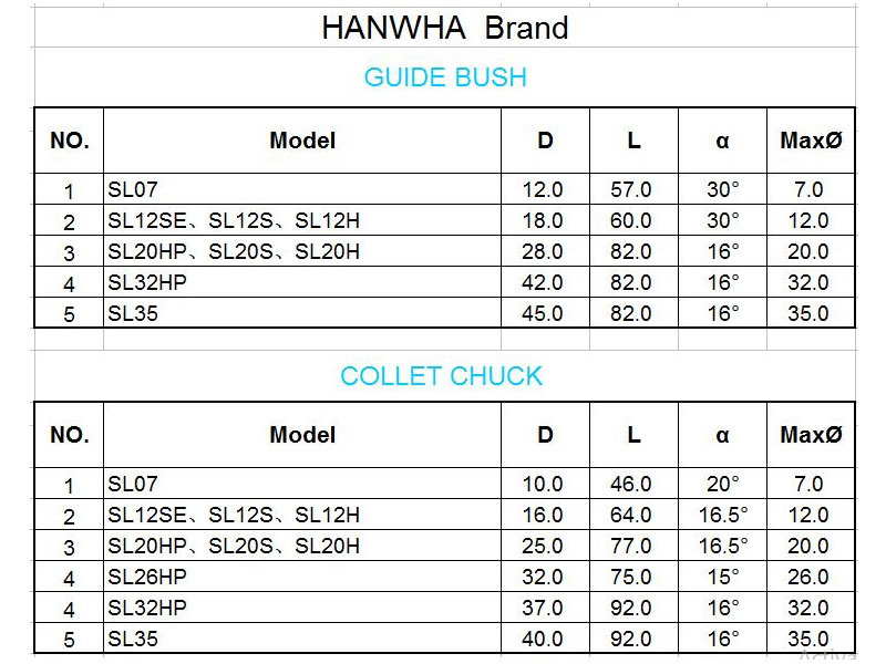 Sản phẩm bao gồm đầy đủ các chuẩn collet thông dụng cho máy tiện CNC HANWHA: